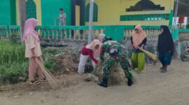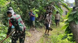 Amankan Jalur Panen, Babinsa Koramil 1407-06/Awangpone Kawal Pembersihan Jalan Tani Desa Jaling