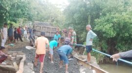 TNI & POLRI Jembatan Kayu Rusak, Babinsa Koramil 1407-11/Barebbo Gercep Ajak Warga Kajaolalidong Kerja Bakti