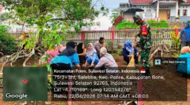 Kerja Bakti Membersihkan Lingkungan, Babinsa Koramil 1407-10/Ponre Gerakkan Semangat Gotong Royong Warganya