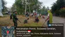 Tingkatkan Jarak Pandang Pengendara, Babinsa Koramil 1407-10/Ponre Gandeng Warga Normalisasi Jalan Di Desa Bolli