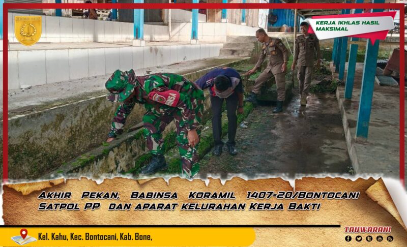 BONE – Kekompakan lintas sektor kembali ditunjukkan di Kecamatan Bontocani, Kab. Bone. Anggota Babinsa Koramil 20/Bontocani, pegawai Kelurahan Kahu dan Satpol PP Kec. Bontocani, turun langsung ke lapangan melakukan kegiatan kerja bakti membersihkan area Pasar Tradisional Kahu, Kel. Kahu, Kec. Bontocani, Bone, Minggu(06/07/2025)