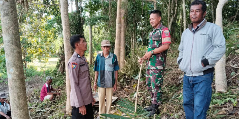 Babinsa Koramil 1407-14/Libureng Dan Warga Tanabatue Bahu Membahu Bersihkan Lingkungan Di Momen Lebaran