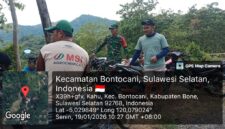 BONE – Untuk mewujudkan kebersamaan dan meningkatkan kerja sama di wilayah binaan, Babinsa Koramil 1407-21/Palakka Rem 141/Tp Koptu Ahmad Amir melaksanakan karya bakti membantu warga membangun rumah di Dusun 2 Labbuca, Desa Maduri, Kec. Palakka, Kab. Bone.