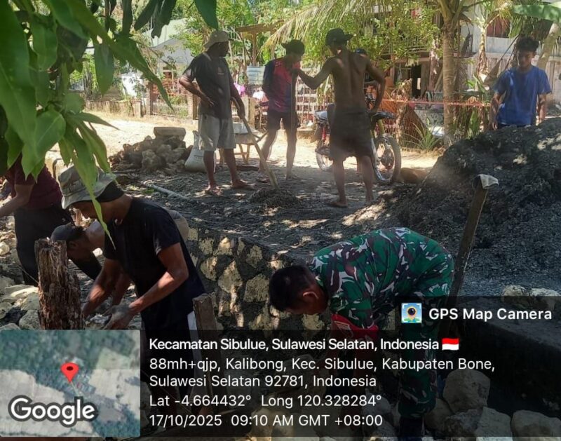 BONE – Babinsa Koramil 1407-13/Sibulue Pelda Andi Firman melaksanakan giat karya bakti pembuatan saluran irigasi untuk pengairan sawah bersama warga Desa Kalibong, Kecamatan Sibulue, Kabupaten Bone. Jumat Siang (17/10/25).