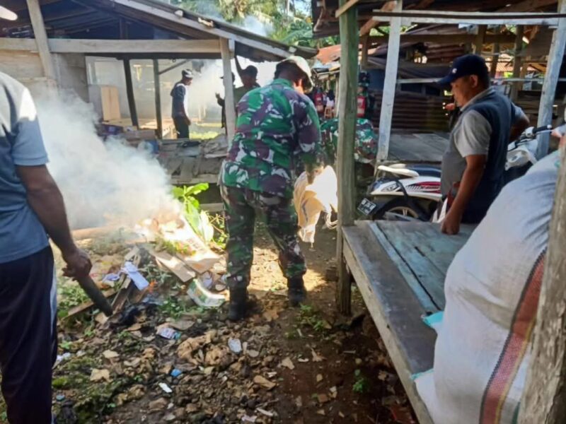 Antisipasi Kumuh, Personel Koramil 17/Salomekko Sasar Sampah Dan Saluran Air Di Pasar Pancaitana