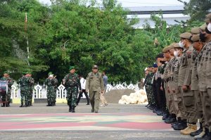 Watampone – Komandan Kodim 1407/Bone Letkol Inf. Moch. Rizqi Hidayat Djohar menghadiri Apel Gelar Pasukan Pengamanan Pemilihan Kepala Desa (Pilkades) serentak Gel. II Kab. Bone Tahun 2022, di Lapangan Merdeka Watampone, Jl. Petta Ponggawae, Kab. Bone. Senin (21/11/2022).
