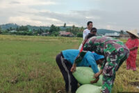 BONE – Babinsa Koramil 1407-18/Kajuara Kopda Andi Faharuddin turun langsung ke sawah membantu warga dalam kegiatan panen padi di Desa Mallahae, Kec. Kajuara, Kab. Bone….