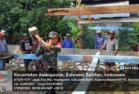 BONE – Babinsa Koramil 1407-06/Awangpone melaksanakan karya bakti pembangunan rumah milik salah satu warga di wilayah binaannya, tepatnya di Desa Lappo Ase, Kecamatan Awangpone,…