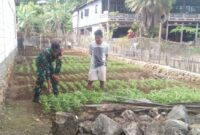 BONE – Babinsa Koramil 1407-05/Ulaweng Serda Asri Rais dampingi warga dalam pemanfaatan lahan di sekitar pemukiman dengan menanam bibit kangkung di Desa Tadangpalie, Kec….
