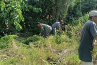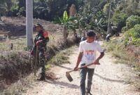 BONE – Babinsa Koramil 1407-12/Cina Pelda Syarifuddin bersama warga melaksanakan karya bakti berupa pembersihan kiri dan kanan jalan di Desa Lompu, Kec. Cina, Kab….