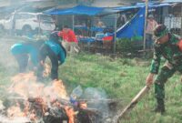 Bone – Anggota Koramil 15/Mare Kodim 1407/Bone bersama siswa Sekolah SMA Neg 2 Bone melaksanakan Karya Bakti pembersihan sampah di kiri kanan jalan Kelurahan…