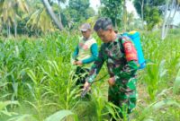 BONE – Babinsa Koramil 1407-05/Ulaweng Serka Musawir melakukan penyemprotan hama pada lahan jagung milik warga binaan di Desa Jompie, Kecamatan Ulaweng, Kabupaten Bone. Senin…