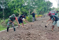 BONE – Babinsa Koramil 09/Lapri Kodim 1407/Bone Koptu Suparman melaksanakan karya bakti bersama warga dalam penggalian saluran air di jalan tani di Desa Liliriattang,…