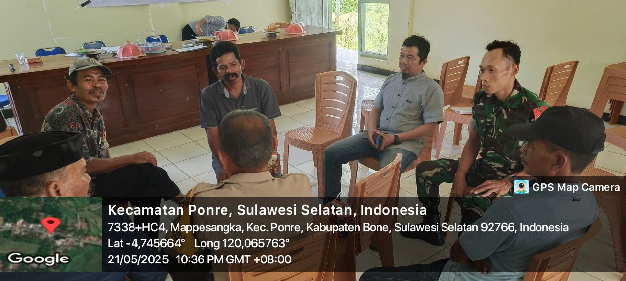 BONE – Bentuk pendekatan dan keakraban, Babinsa Koramil 1407-10/Ponre Serka Darwan Sanusi melaksanakan Komunikasi Sosial (Kosmos) dengan warga binaan, di Kantor Desa Mappesangka, Kec….
