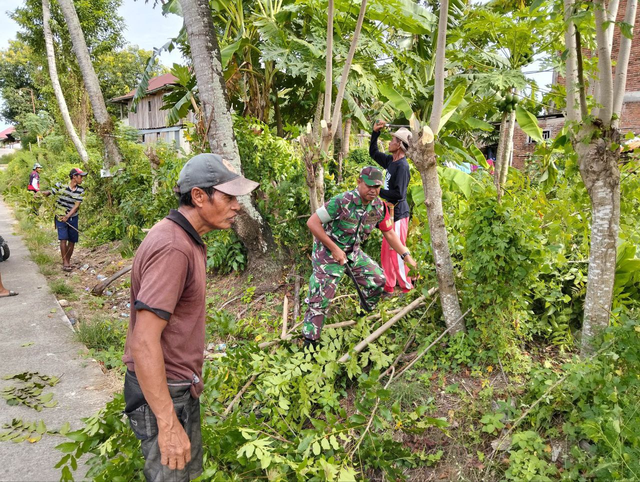BONE – Babinsa Koramil 1407-02/Dua Boccoe Serda Rahmat bersama warga melaksanakan kerja bakti pembersihan ranting-ranting dan memotong serta memangkas pohon yang mengganggu pengguna jalan…