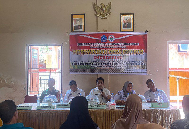 BONE – Dukung program pemerintah, Anggota Koramil 13/Sibulue Kodim 1407/Bone Sertu Sukardi menghadiri rapat Musyawarah Desa Khusus (Musdesus) di aula Desa Sumpang Minangae, Kecamatan…