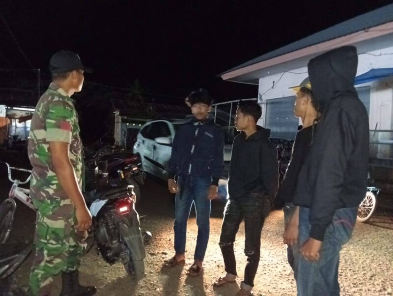 Dalam kegiatan tersebut, Babinsa melakukan pemantauan situasi wilayah sekaligus memberikan imbauan secara persuasif kepada para pemuda agar senantiasa menjaga ketertiban, menghindari perbuatan negatif, serta tidak melakukan aktivitas yang dapat mengganggu keamanan dan kenyamanan masyarakat.