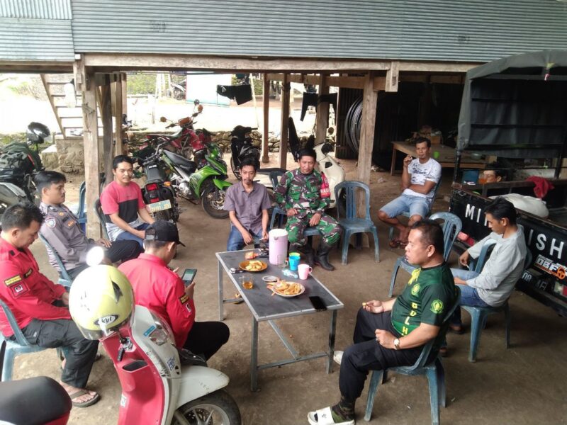 BONE – Babinsa Koramil 1407-08/Lamuru Serda Nasruddin bersama Bhabinkamtibmas melaksanakan Komunikasi Sosial (Komsos) dengan masyarakat binaan di Desa Turucinnae, Kecamatan Lamuru, Kabupaten Bone. Minggu (17/08/25).