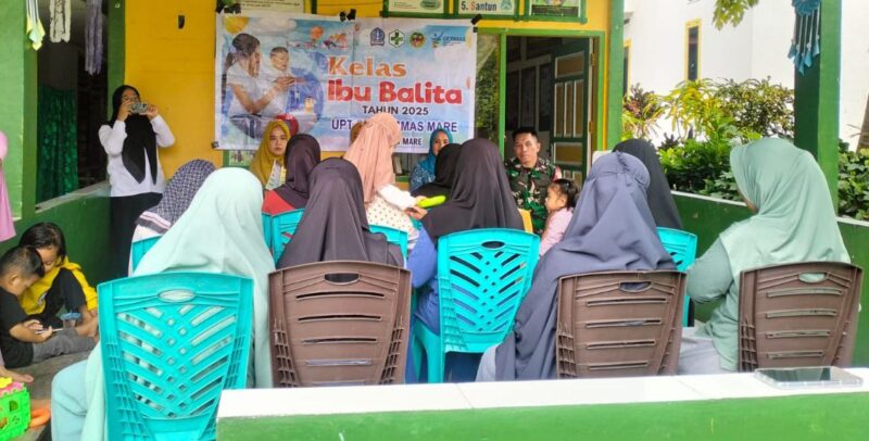 BONE – Babinsa Koramil 1407-15/Mare Serma Abd. Rahman hadiri sekaligus mendampingi kegiatan Kelas Ibu Balita yang berlangsung di Desa Karella, Kec. Mare, Kab. Bone. Sabtu (06/09/25).