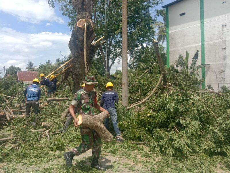 Dalam kegiatan tersebut, Sertu Maddi bersama warga setempat bekerja sama memotong ranting-ranting pohon yang dianggap berisiko tumbang, terutama yang berada dekat dengan jalan raya dan pemukiman warga.