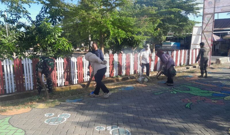 Dengan penuh semangat kebersamaan, Babinsa dan pegawai kecamatan bergotong royong menyapu, mengumpulkan sampah, serta memangkas rumput yang sudah mulai tinggi.