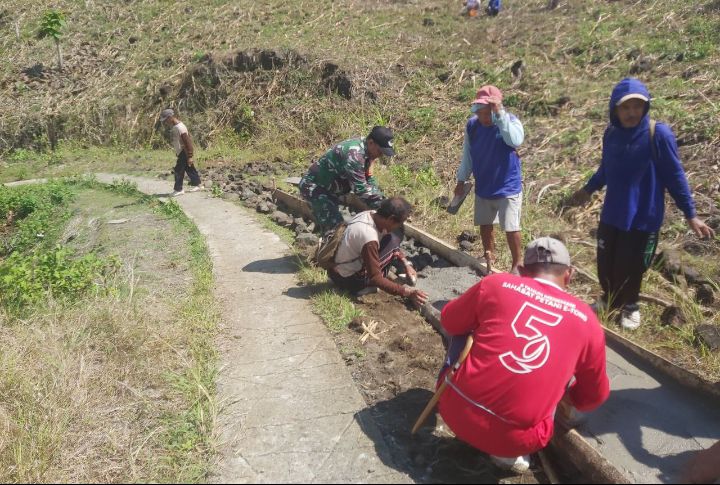 Kegiatan ini merupakan bentuk kepedulian Babinsa terhadap pembangunan infrastruktur Desa, khususnya sarana jalan pertanian yang menjadi akses utama bagi para petani.