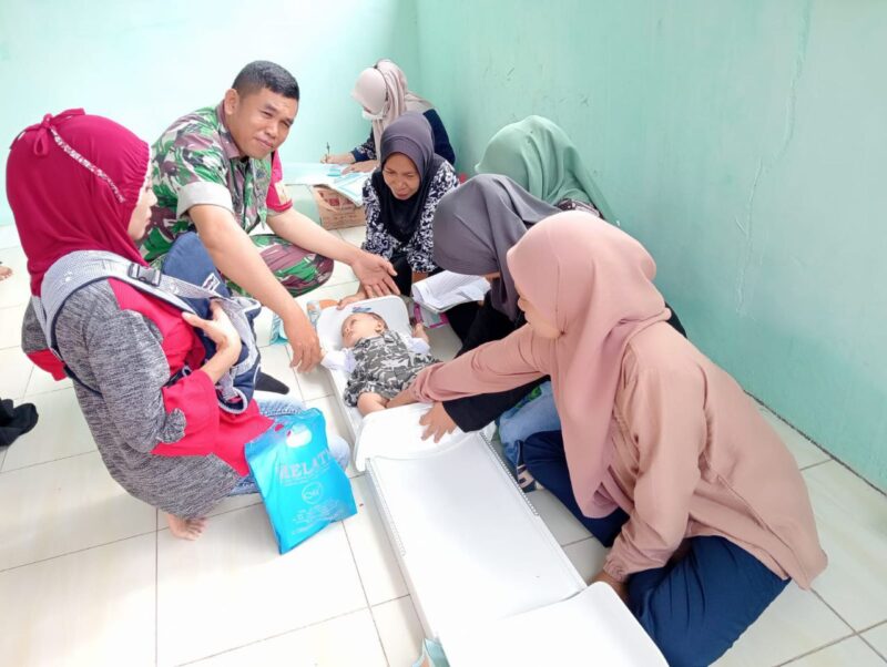 Dalam pendampingannya, Serda Amir berperan aktif membantu kelancaran pelaksanaan kegiatan serta memberikan motivasi kepada para ibu agar rutin mengikuti Posyandu demi menjaga kesehatan anak-anak mereka.