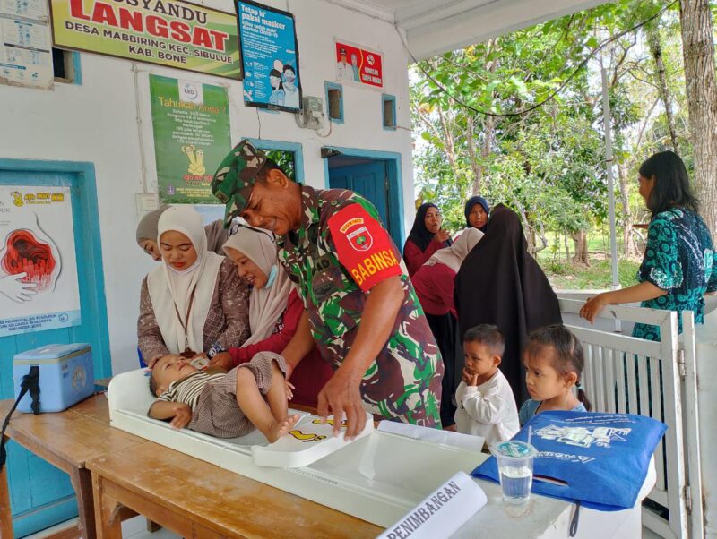 BONE – Serda Muh Firdaus Babinsa Koramil 1407-13/Sibulue turut menghadiri Posyandu yang berlangsung di Posyandu Mabbiring, Desa Mabbiring, Kecamatan Sibulue, Kabupaten Bone. Kamis (07/08/25).