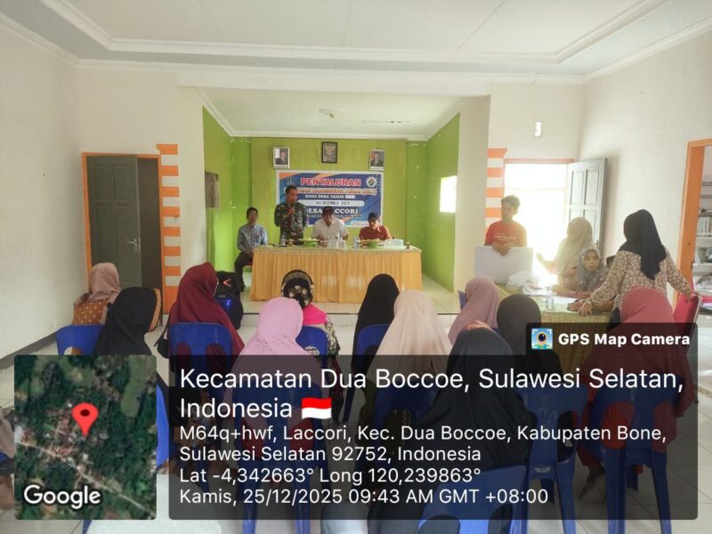 Bone – Babinsa Koramil 1407-02/Dua Boccoe, Sertu Agustang C, melaksanakan pendampingan penyaluran Bantuan Langsung Tunai Dana Desa (BLT DD) yang disalurkan oleh Pemerintah Desa Laccori, Kecamatan Dua Boccoe, Kabupaten Bone, Kamis siang (25/12/2025).