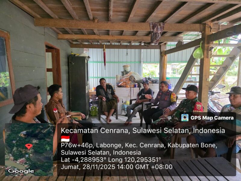 BONE – Babinsa Koramil 1407-03/Cenrana, Sertu Fadli Ragga, melaksanakan Komunikasi Sosial (Komsos) bersama Kepala Desa Lebongnge, Bhabinkamtibmas, serta masyarakat setempat. Kegiatan ini berlangsung di rumah Kepala Dusun Perangeng, Desa Lebongnge, Kecamatan Cenrana, Kabupaten Bone. Jumat(28/11/2025)