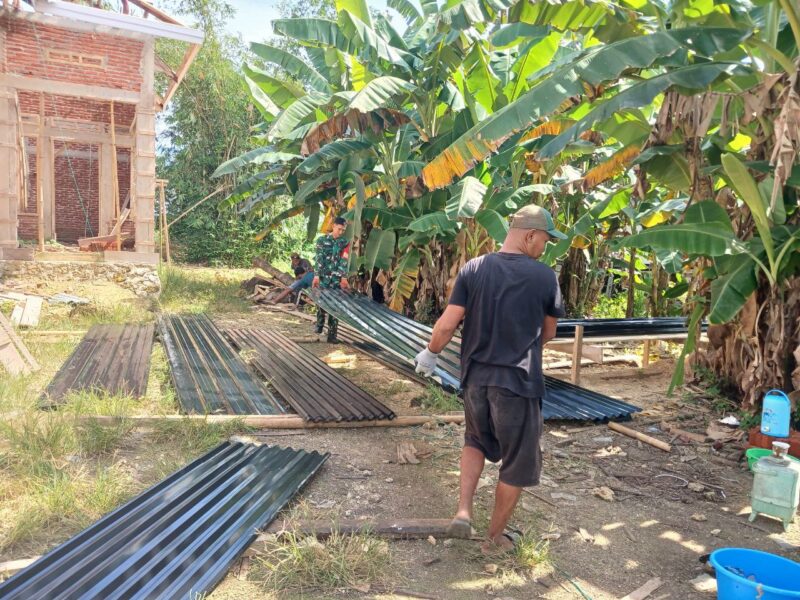 Bone – Dalam rangka mempererat kemanunggalan TNI dengan rakyat, Babinsa Koramil 1407-05/Ulaweng, Serda Ridwan, bersama warga melaksanakan kegiatan Bakti TNI dengan membantu pembangunan rumah salah satu warga binaan di Desa Lilina Ajangale, Kecamatan Ulaweng, Kabupaten Bone, Rabu (24/12/2025).
