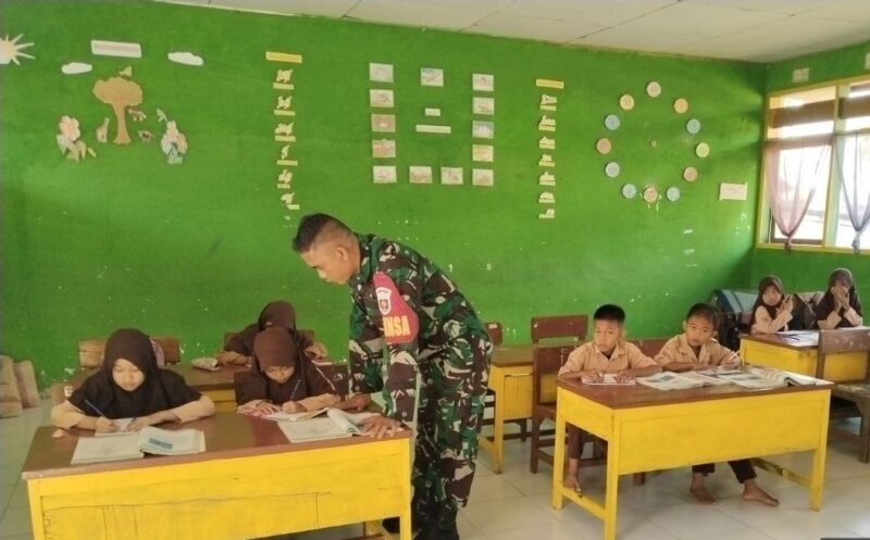 Babinsa Koramil 1407-09/Lapri Kunjungi Sekolah Dasar Di Desa Tungke Dukung Semangat Belajar Generasi Muda