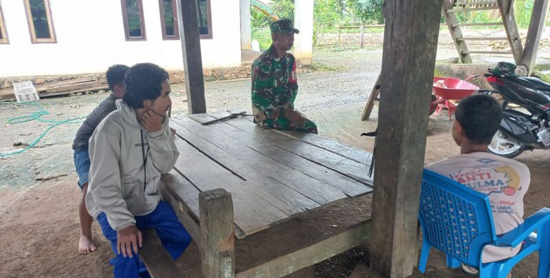 BONE – Babinsa Koramil 10/Ponre Kodim 1407/Bone Serda Darwis melaksanakan komunikasi sosial (Komsos) bersama warga di Desa Tellu Boccoe, Kec. Ponre, Kab. Bone. Minggu (09/11/25).