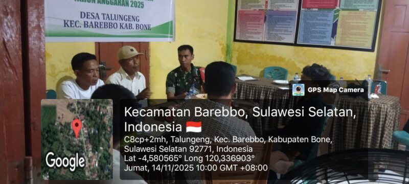 BONE – Serma Salama, Babinsa Koramil 1407-11/Barebbo, melaksanakan kegiatan komunikasi sosial (Komsos) dengan warga binaannya di Desa Talungeng, Kecamatan Barebbo, Kabupaten Bone. Jumat siang (14/11/25).