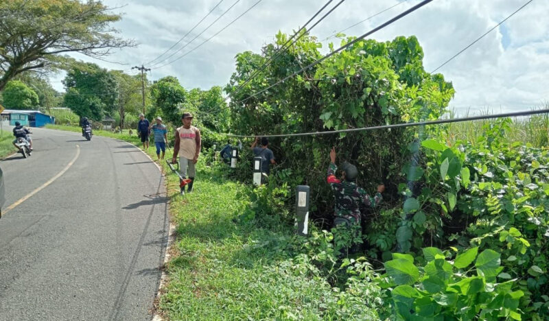 Babinsa Koptu Abd. Rahman aktif terlibat langsung dalam gotong royong bersama warga untuk membersihkan lingkungan sekitar jalan.