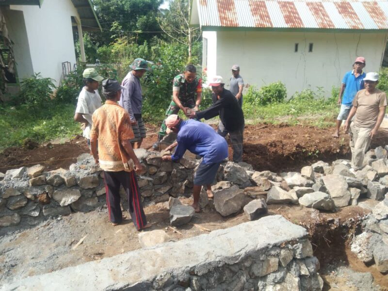 Gotong royong ini tidak hanya mempererat tali silaturahmi, tetapi juga membantu warga yang membutuhkan,” ujar Serda Alimuddin di tengah kesibukannya membantu pembangunan pondasi.