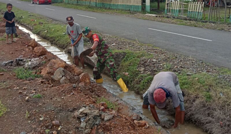 Bone – Babinsa Koramil 1407-18/Kajuara, Koptu Abd Rahman, bersama Kepala Desa Ancu dan warga masyarakat melaksanakan kegiatan Karya Bakti pembersihan saluran air di Desa Ancu, Kecamatan Kajuara, Kabupaten Bone. Selasa (30/09/2025)