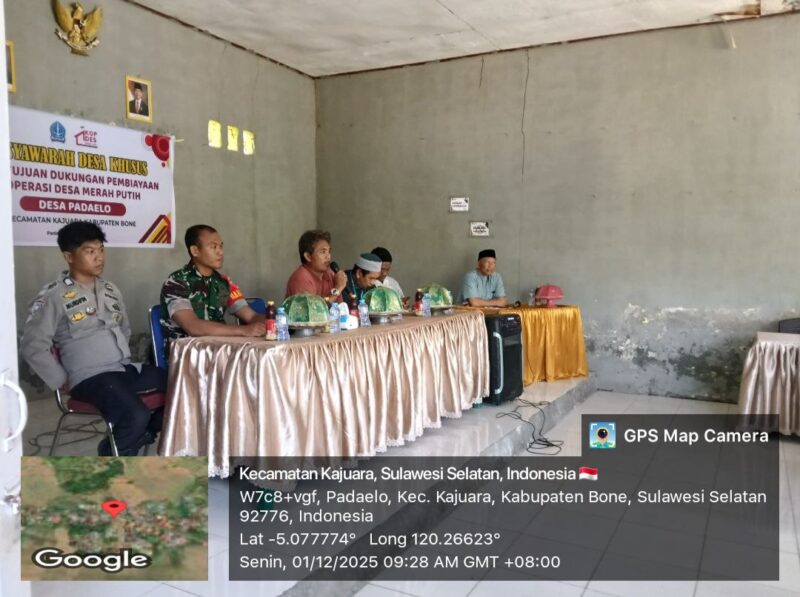 BONE – Babinsa Koramil 1407-18/Kajuara, Serda M Alim Bahri, menghadiri Musyawarah Desa Khusus (Musdesus) terkait persetujuan dukungan pembiayaan Koperasi Desa Merah Putih di Desa Padaelo, Kecamatan Kajuara, Kabupaten Bone. Senin Siang (01/12/25).