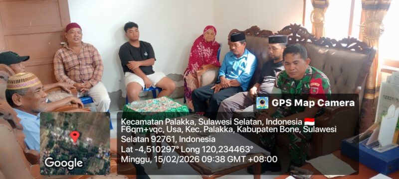 BONE – Babinsa Koramil 1407-21/Palakka Koptu Semaila menghadiri mediasi permasalahan warga yang dilaksanakan di Kantor Desa Usa, Kecamatan Palakka, Kabupaten Bone. Minggu Siang (15/02/26)