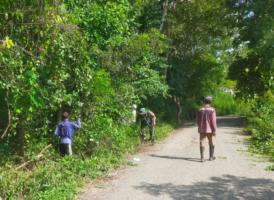 Babinsa dan warga masyarakat begitu kompak dan antusias untuk membersihkan sampah serta memotong ranting-ranting pohon di tepi jalan. Kegiatan yang dilaksanakan ini agar jalan desa menjadi bersih rapi dan aman dilalui oleh masyarakat pengguna jalan.