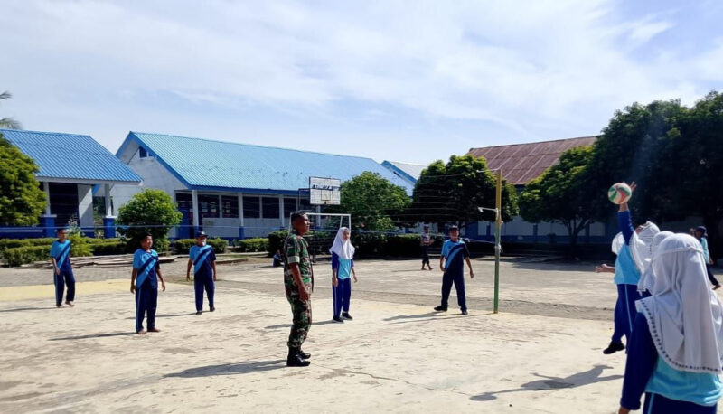 Dengan penuh semangat, Babinsa mengajak para siswa untuk mengikuti serangkaian kegiatan olahraga yang diawali dengan pemanasan, lari kecil, senam ringan, hingga bermain bola voli bersama. Kegiatan ini berlangsung meriah dan mendapat antusias tinggi dari para siswa.