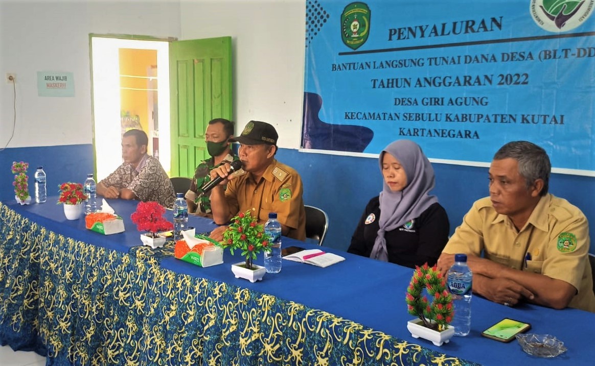 Sebanyak 96 keluarga penerima manfaat (KPM) di desa Giri Agung mendapat bantuan sebesar Rp. 300.000,-/KPM dimana BLT tersebut bersumber dari Dana desa dan diberikan kepada masyarakat miskin yang terdampak pandemi covid- 19.