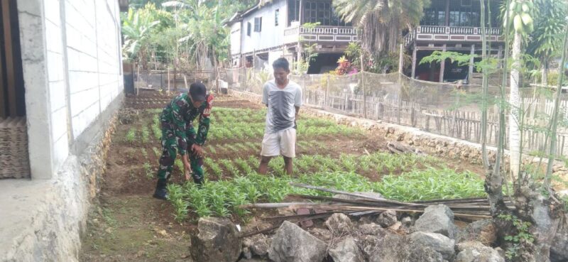 BONE – Babinsa Koramil 1407-05/Ulaweng Serda Asri Rais dampingi warga dalam pemanfaatan lahan di sekitar pemukiman dengan menanam bibit kangkung di Desa Tadangpalie, Kec. Ulaweng, Kab. Bone. Jumat (29/08/25).