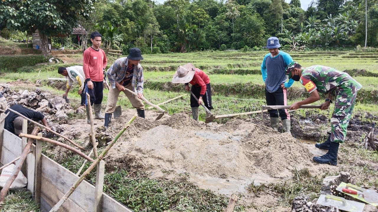 Proses pembuatan saluran irigasi tersebut dikerjakan secara bersama-sama dengan para petani yang berada di wilayah binaan, hal tersebut dimaksudkan untuk meringankan dan mempercepat proses pengerjaannya sehingga dapat segera dipergunakan oleh petani untuk mengairi sawahnya.