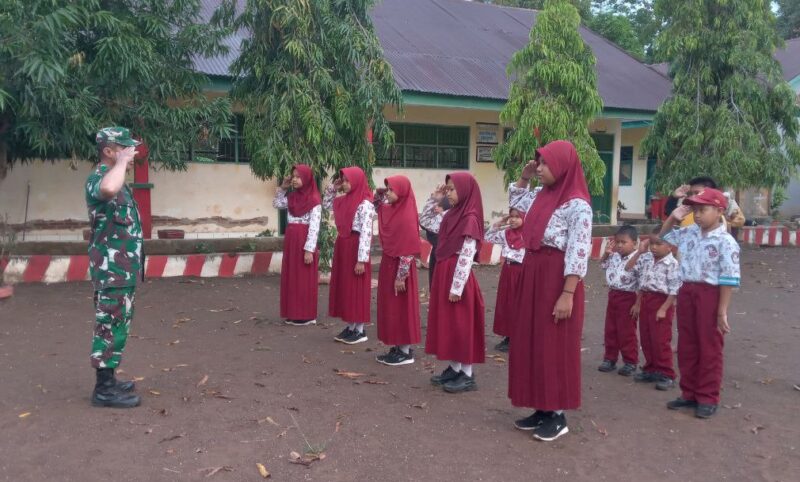 Bentuk Karakter Generasi Muda, Babinsa Libureng Kodim 1407/Bone Latih Baris-Berbaris Murid SD