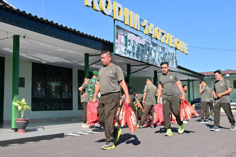 Bone – Kepedulian terhadap kesejahteraan prajurit kembali ditunjukkan oleh Komandan Kodim (Dandim) 1407/Bone, Letkol Inf Laode Muhammad Idrus. Dalam suasana penuh kebersamaan, ia membagikan puluhan karung beras kepada personel Makodim 1407/Bone, bertempat di halaman apel Makodim, Jumat (17/04/2026).