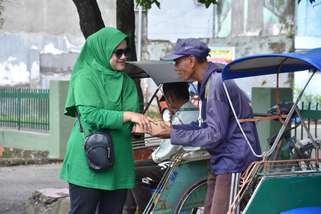 Watampone – Prajurit dan Persit Kartika Chandra Kirana Koorcabrem 141 PD XIV/Hsn, berbagi dalam kegiatan “Jumat Berkah” Kepada tukang becak dan warga yang kurang mampu,