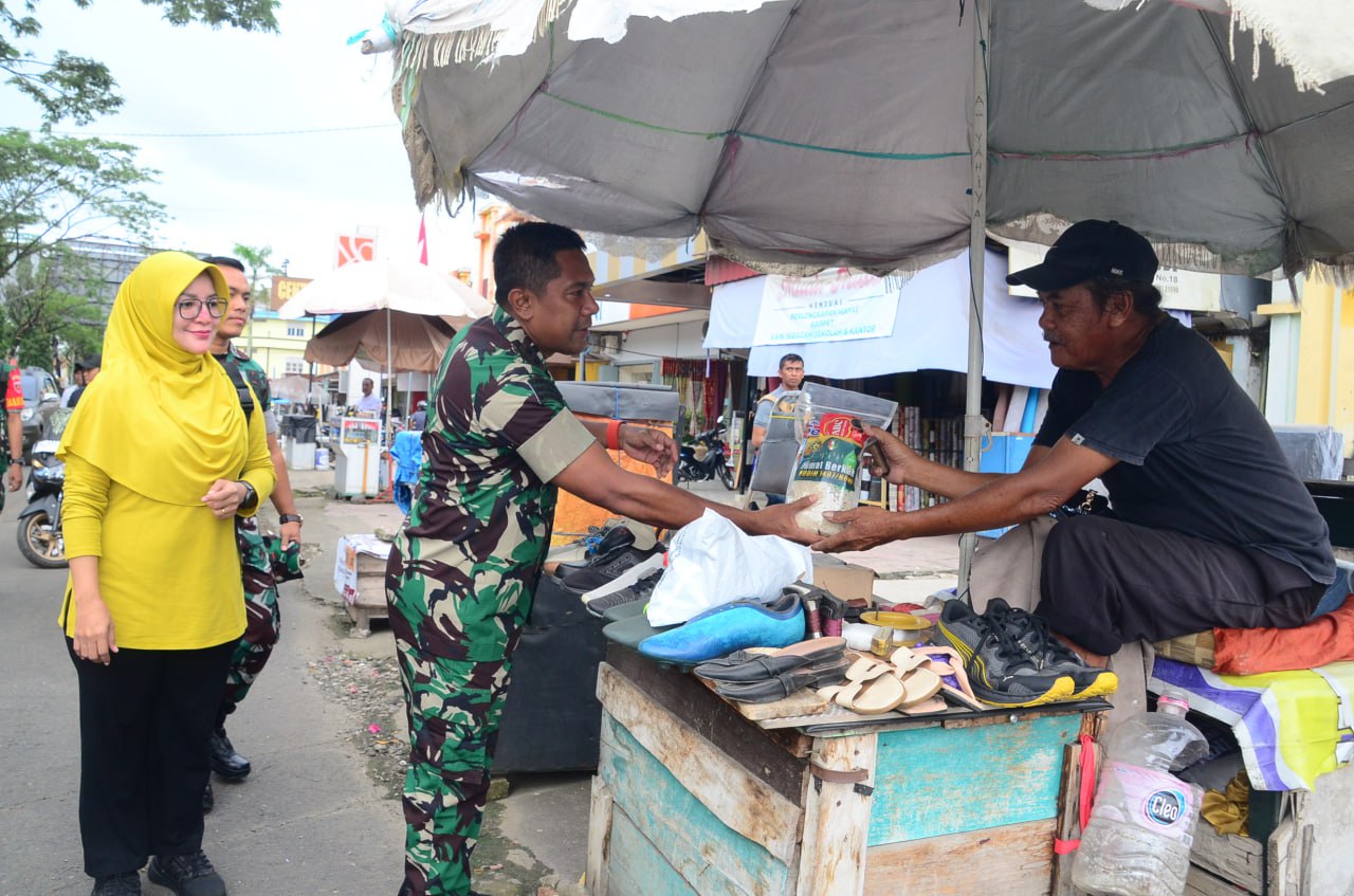 BONE – Dandim 1407/Bone Letkol Inf. Laode Muhammad Idrus didampingi Ketua Persit KCK Cabang XXV Ny. Fitrianti Laode bersama rombongan melaksanakan kegiatan Jum’at Berkah berbagi ratusan sembako kepada warga sekitar, Kec. Tanete Riattang, Kab. Bone. Jumat (23/05/25).