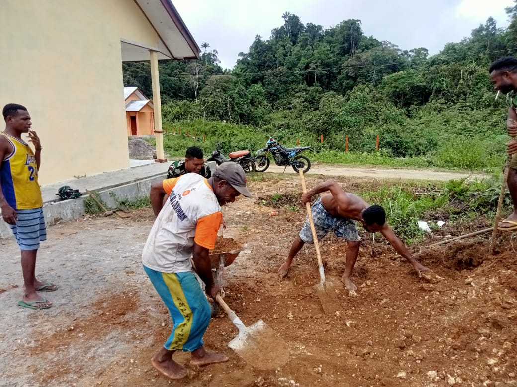 Pendim1809maybrat- Babinsa Satgaster melaksanakan karya bakti membantu pembuatan pondasi pembangunan rumah milik warga binaan di dukuh Kambufatem, Distrik Aitinyo Barat, Kab. Maybrat, Papua Barat…