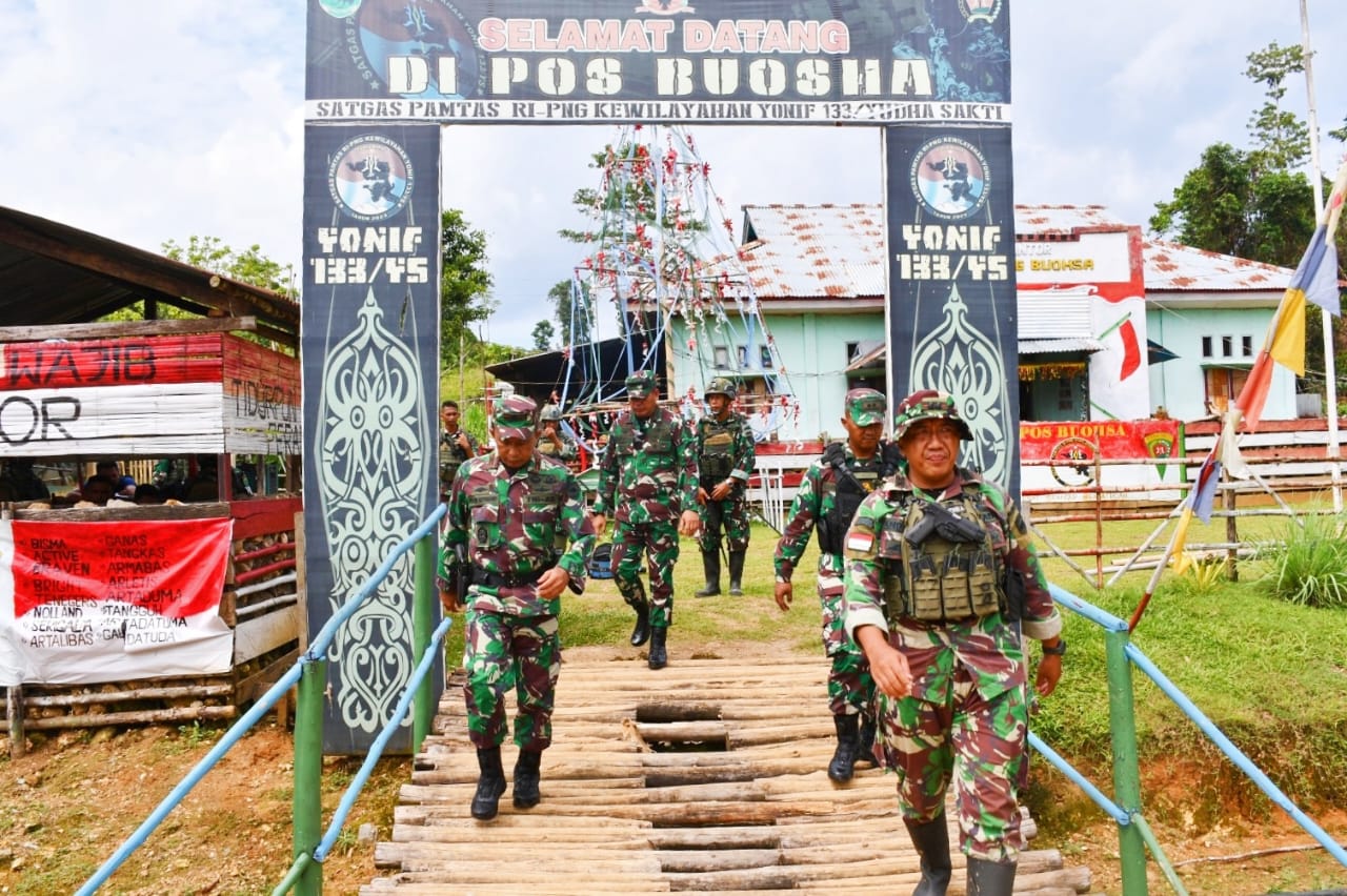 Maybrat-Papua Barat Daya. Kunjungan Kerja Danrem 181/PVT Brigjen TNI Totok Sutriono S.Sos., M.M., beserta rombongan melaksanakan Kunjungan di Satgas 133/YS pasca penyerangan terhadap Pos…